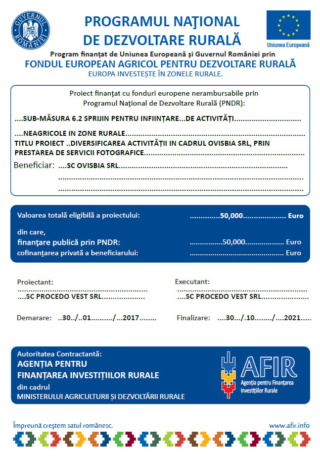 Acest site nu reprezintă poziţia oficială a Comisiei Europene. Întreaga responsabilitate referitoare la corectitudinea şi coerenţa acestor informaţii aparţine persoanelor care au iniţiat pagina web.Toate informaţiile privind Programul Național de Dezvoltare Rurală furnizate prin acest site sunt distribuite GRATUIT şi nu sunt destinate comercializării.